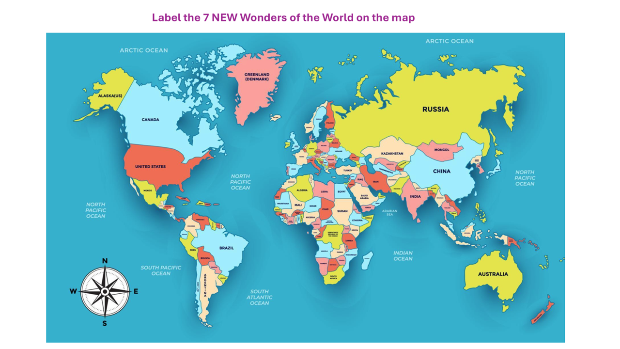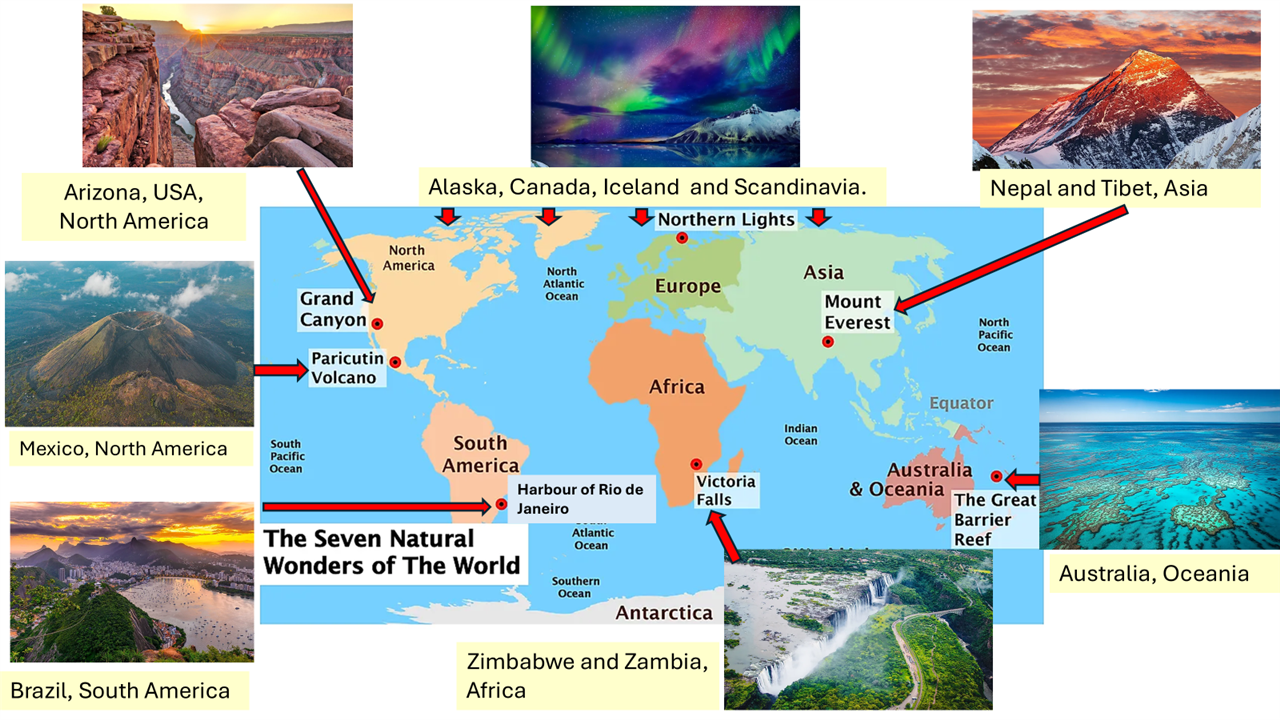Aim: To learn the names and locations of the natural and new wonders of the world.