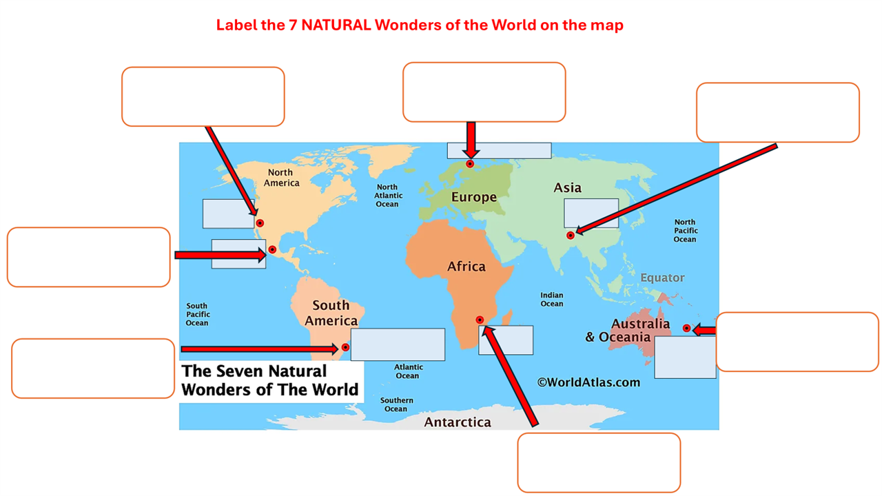 Task 1: Use the "look, cover, say" method to revise the location of the 7 natural wonders of the world